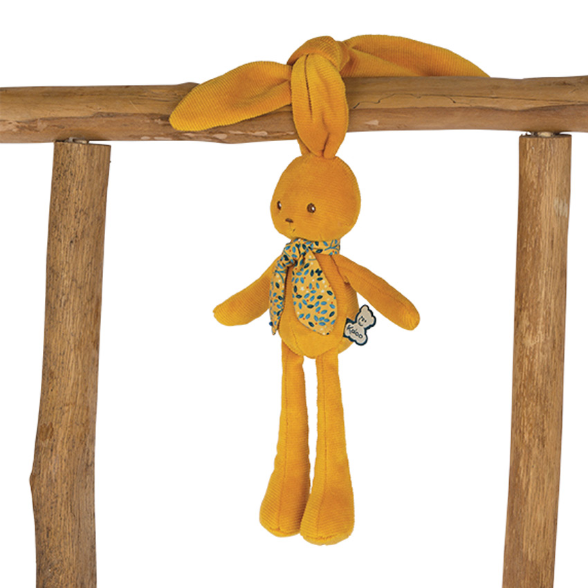 This cheerful 35cm Ochre Rabbit has beautiful long arms, legs and ears that are ideal hand holds for baby. The ears are also perfect to tie him on to your car seat, cot or pram, or even the handle bars of your bike when you're a bit older! Created from super soft corduroy, Ochre Rabbit has a printed scarf matching his body and a Kaloo signature embroidered K on his foot. Give him a wash in the machine and pop him into the drier so he always looks his best and ready for an adventure or a bedtime cuddle. Whichever colour you choose, the Kaloo Lapinoo range is the perfect gift that is presented in an FSC giftbox you can customise with a message.