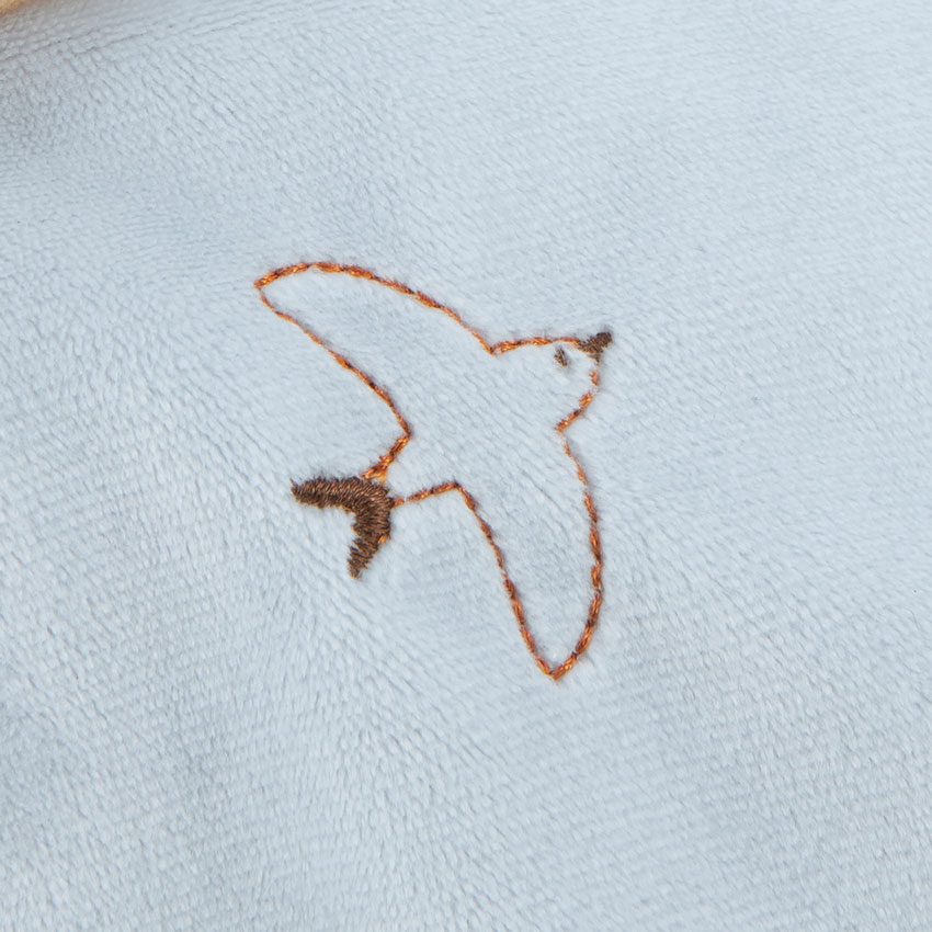 Embellished with a sweet gingham print and delicately embroidered with a swallow, this comforter blends classic charm with thoughtful detail. Made from 86% recycled materials, including micro-velvet, poplin, and recycled polyester stuffing, it's as gentle on the planet as it is on baby.