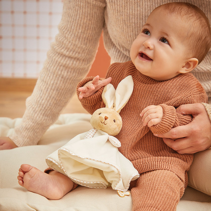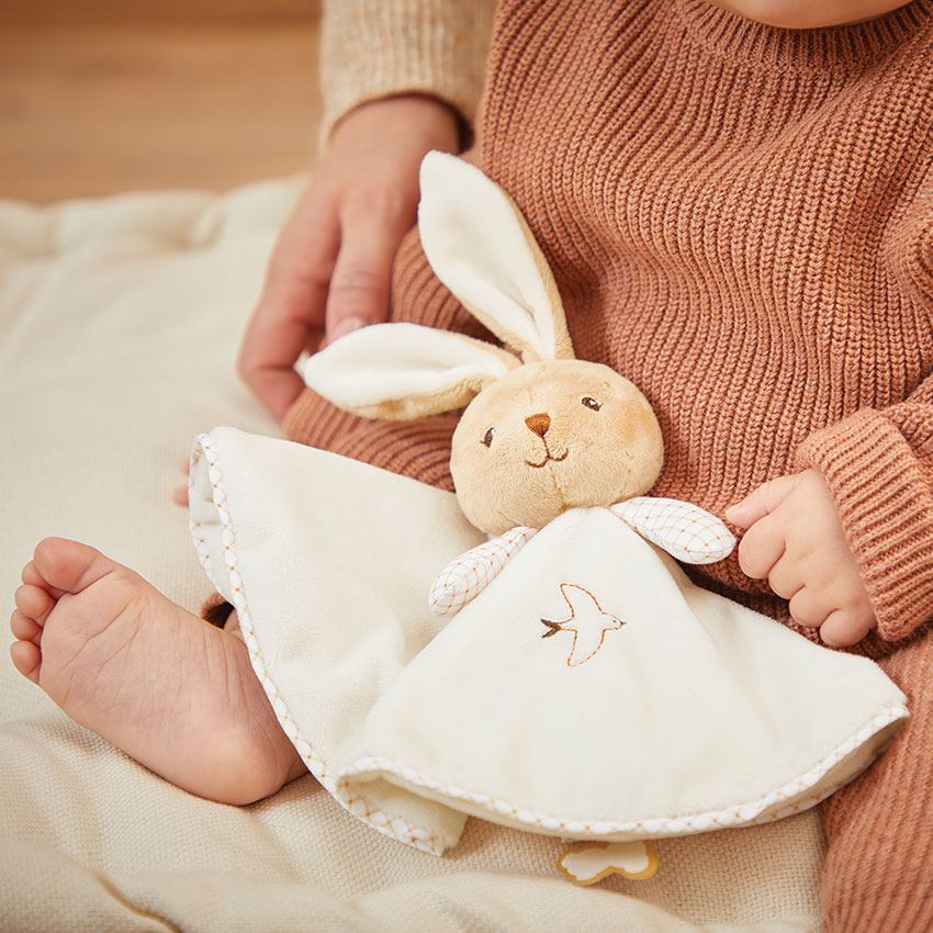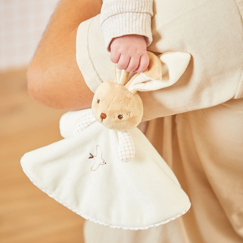 Presented in a matching FSC-certified reusable gift box with space for a personalised message, this cream rabbit doudou makes a thoughtful gift for a newborn, baby shower or christening. Machine washable at 30 degrees C.