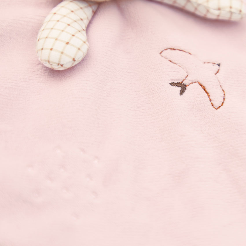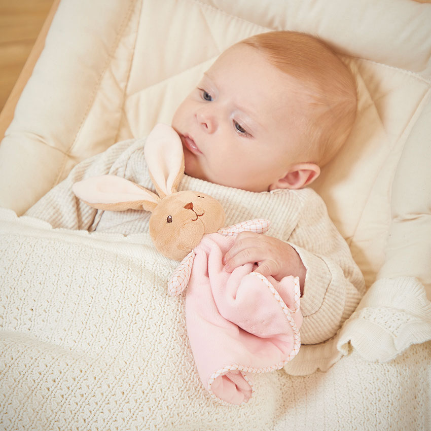 Soft, sweet, and perfectly huggable, this round rabbit comforter in delicate pink is designed to soothe and comfort from the very first days. Its flat, circular shape and floppy ears make it easy for little hands to grasp, while the ultra-soft fabric invites endless cuddles.