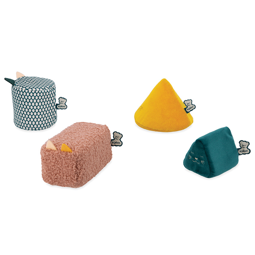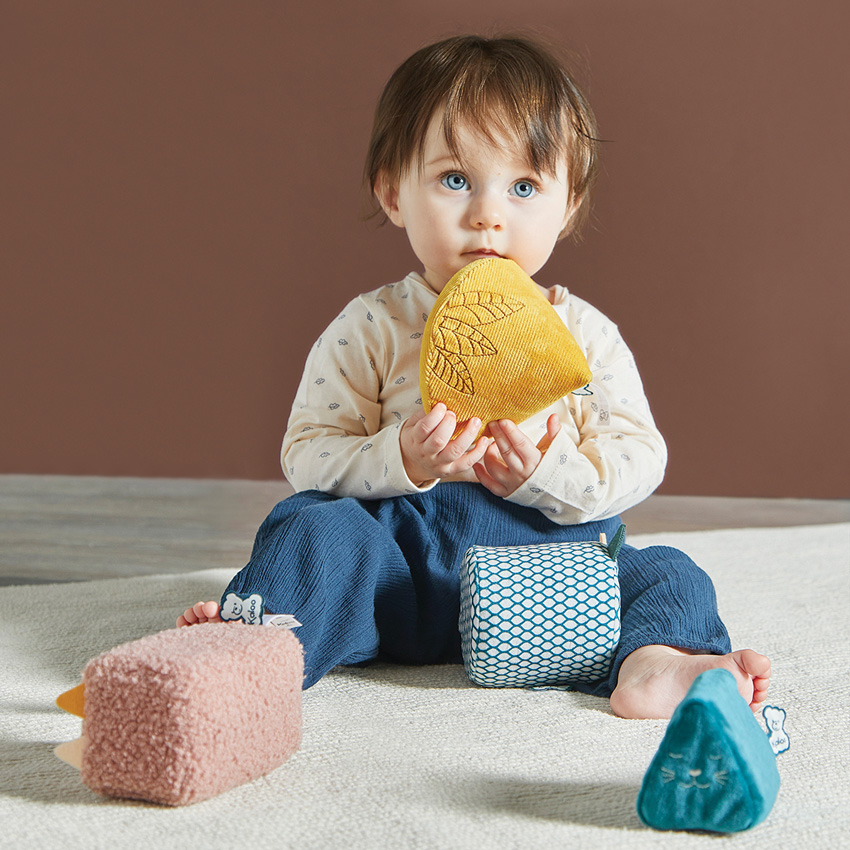 This perfect set of sensory accessories serve both as a developmental tool and a source of entertainment for babies and children alike. Designed and safe for babies aged 0+, this set of 4 large chunky shapes are ideal for awakening all five senses and encouraging exploration and creativity. Each shape features a different texture and colour, allowing your babies to spot the contrast and manipulate them. Two of the shapes include bells inside, helping to develop baby's hearing as they play. With these Soft Sound Shapes, babies and children can explore the different shapes and textures, stacking them in multiple ways to develop creativity and motor skills, as well as promoting overall sensory development. Made from high-quality materials, these sound shapes are both safe and durable, ensuring that they will last through hours of playtime. Machine washable at 30 deg for easy care. You can also be assured knowing they are environmentally responsible, with stuffing made from 100% recycled plastics.